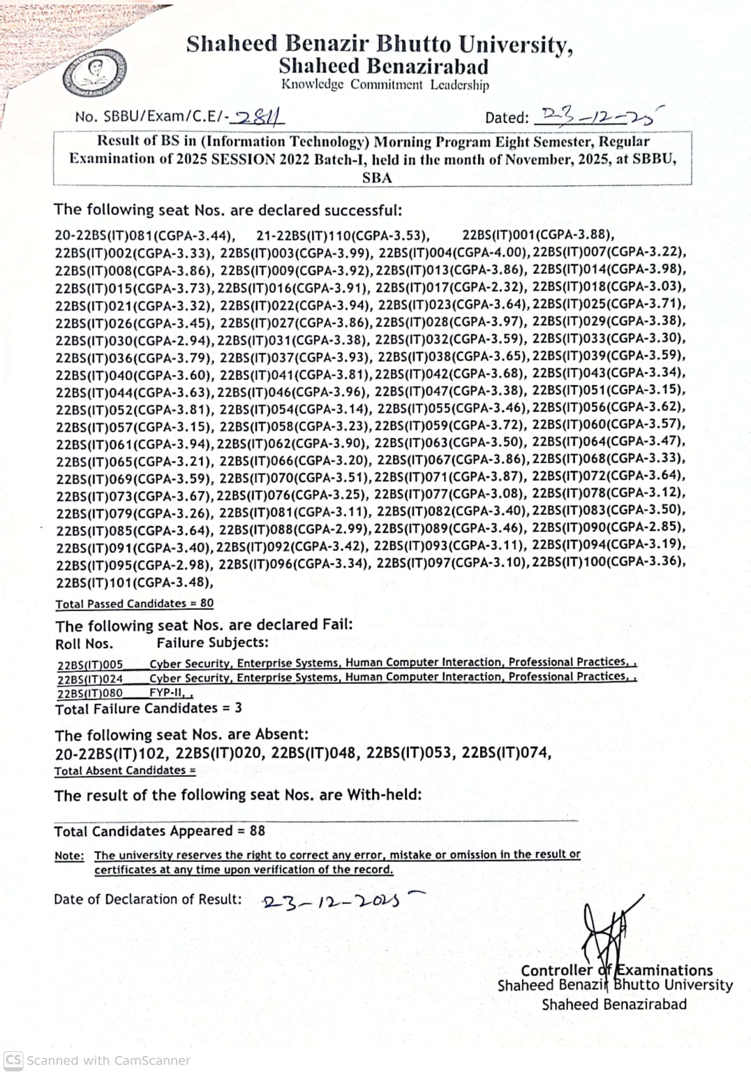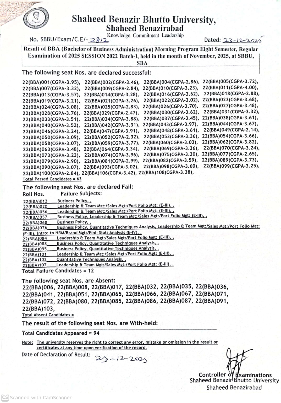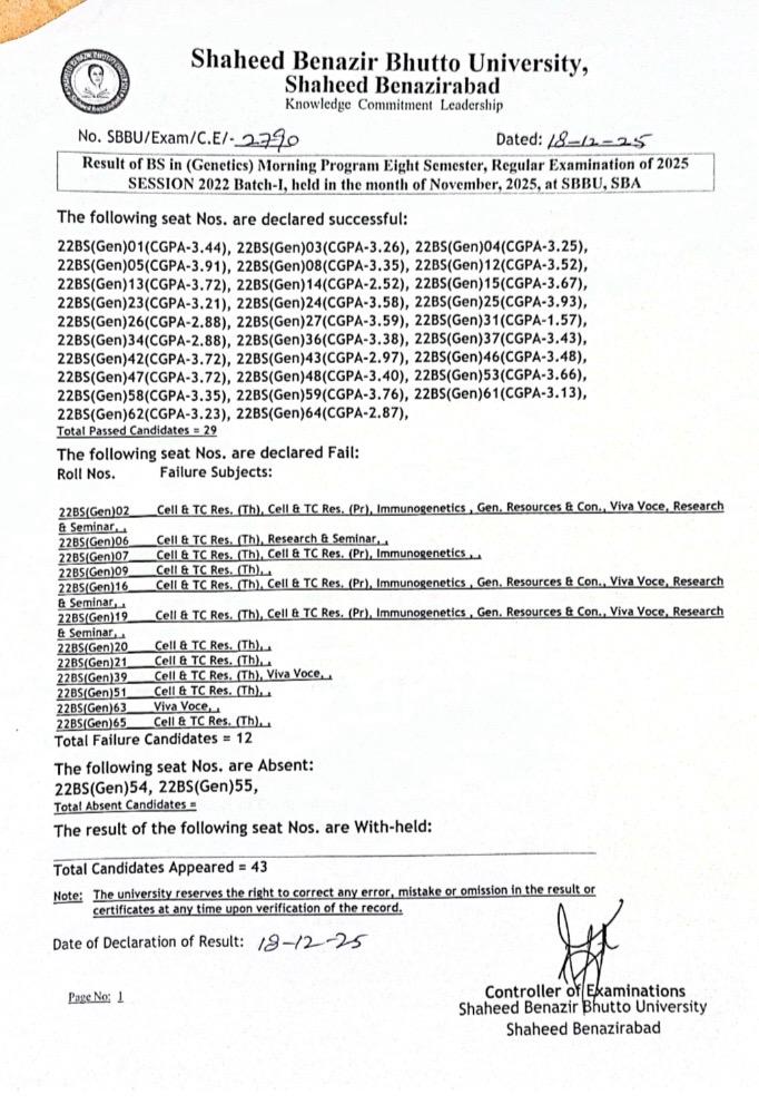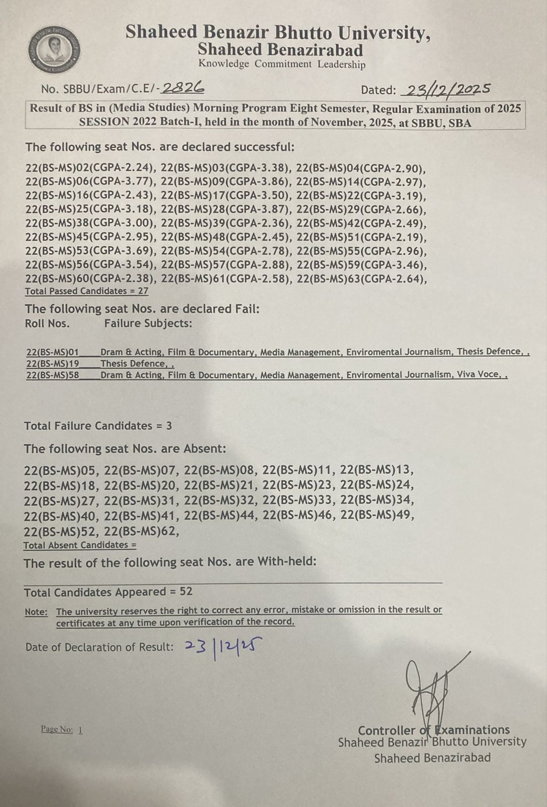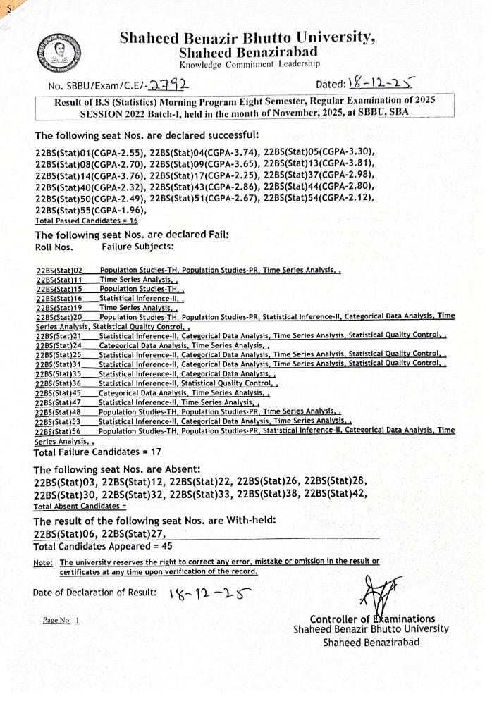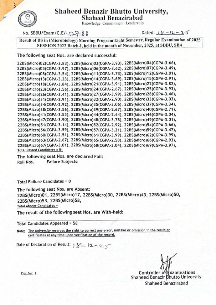 » Result of A.D (Commerce) Part-I Annual Examination 2024 of all affiliated colleges of four districts held by the SBBU SBA in the month of July, 2025.[View Results]